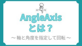 AngleAxisメソッドとは、回転させる軸と回転角度を指定することで、その回転のQuaternionを作成できるメソッドです。このAngleAxisを使うことで、オブジェクトを特定の軸に対して回転させるという処理を作ることができます。