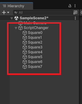 colorChanges = GetComponentsInChildren<ColorChange>(); // 子オブジェクトのコンポーネントを一括で取得