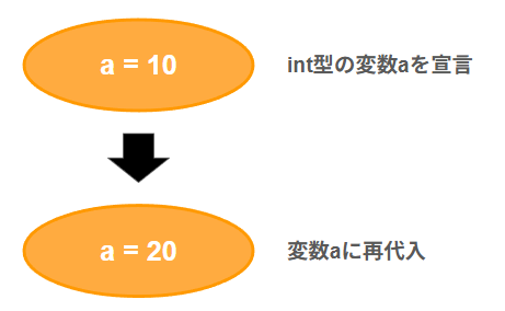 通常の変数は、以下のように最初に値を代入していても、あとでその値を更新・変更して使うことができます。