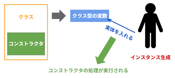 コンストラクタとは、クラスのインスタンスが生成された時に、実行することができる処理のことです。