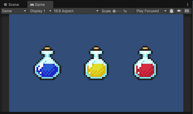 今回は他に2つのアイテムがあるので、上記のスクリプトを名前と回復量だけを変更して準備しています。
