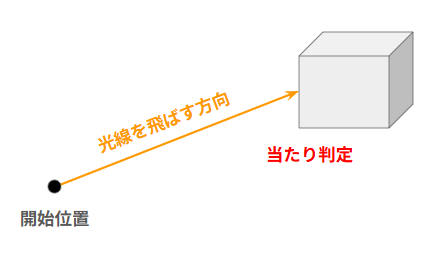 そして、光線を飛ばした先にコライダーの付いているオブジェクトがある場合は、当たり判定の処理を作ることができるようになっています。