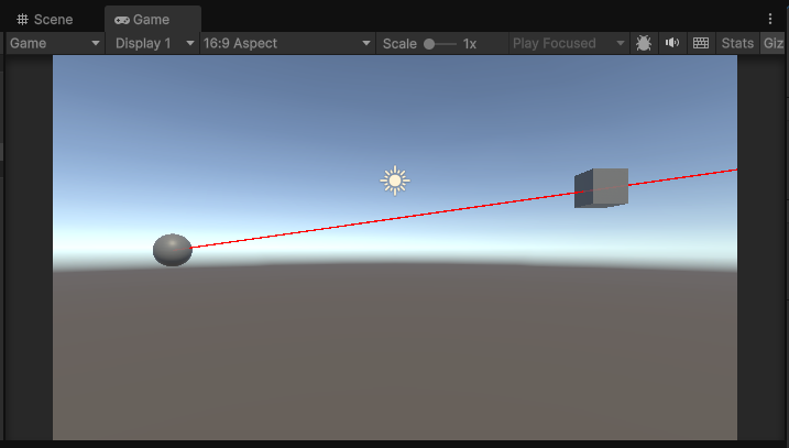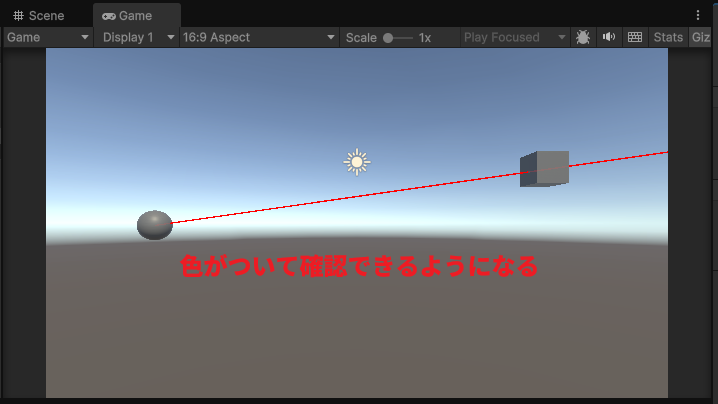 Unity上でのみ表示することができますが、想定した方向に光線が飛んでいるかどうかを確認することができるので便利です。