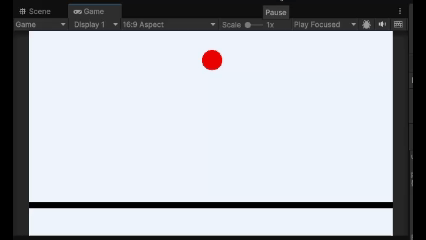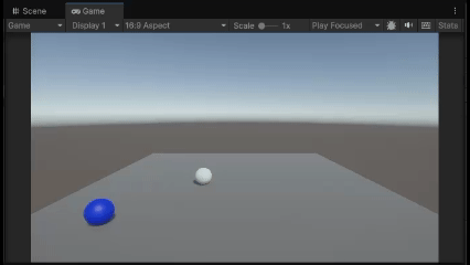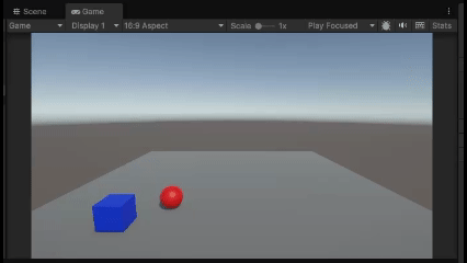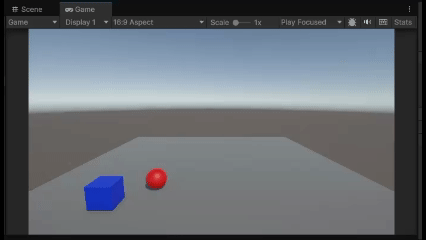 例えば、Rigidbodyを付けた赤い球形のオブジェクトに、青いキューブオブジェクトを衝突させて動かしているとします。