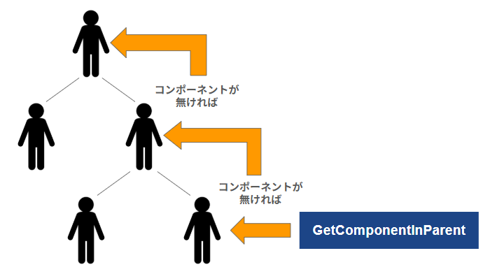しかし、親オブジェクトのコンポーネントを取得したいという場合には、GetComponentInParentというメソッドが使われることがあります。