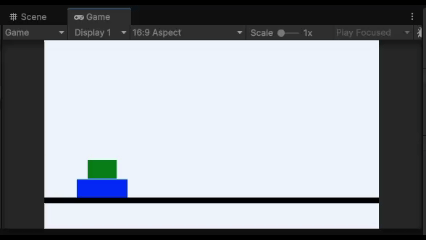 ここでは、親オブジェクト(青色)にRigidbody2DとCollider2Dのコンポーネントをアタッチしておき、子オブジェクト(緑色)にはCollider2Dのコンポーネントだけをアタッチしておきます。