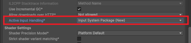メニュー > Edit > ProjectSettings > Player > Active Input Handing