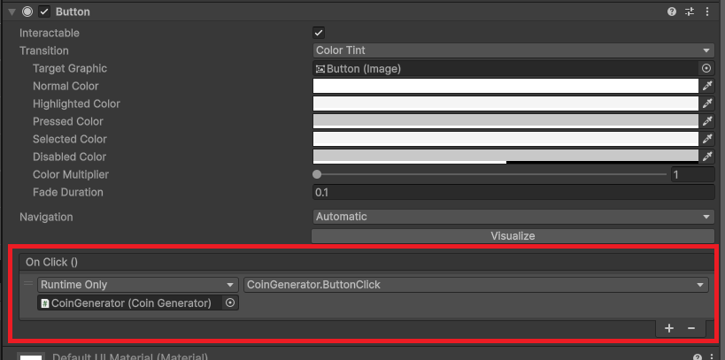 最後に、コインのオブジェクトが画面外に行った際に、コインオブジェクトに紐づけたスクリプト(CoinController)で、オブジェクトをプールに戻す処理を記述しておきます。