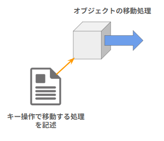 例えば、オブジェクトを移動させる処理を作るだけであれば、通常はキー操作を使った移動処理を記述したクラスを紐づけるだけで済みます。