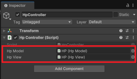}あとは、ユーザーからの操作を受け取るHpControllerのクラスを作成します。
