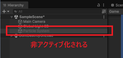 Destroyは、パーティクルシステムの再生が終了すると、そのオブジェクトを削除(破壊)する処理を実行します。