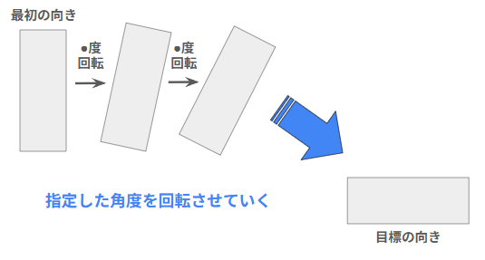 フレーム毎にこの角度分の回転が行われますが、目標の回転に近づいた場合は、その角度以下の回転になることがあります。