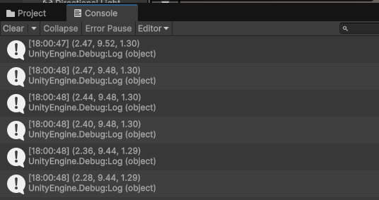 マウスカーソルの位置が移動するたびにワールド座標を取得出来ているのが分かります。