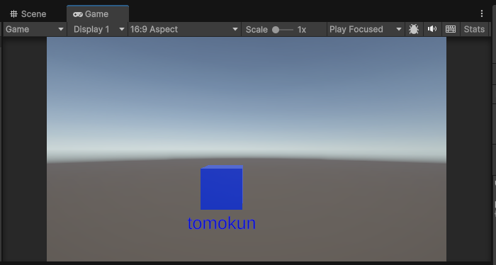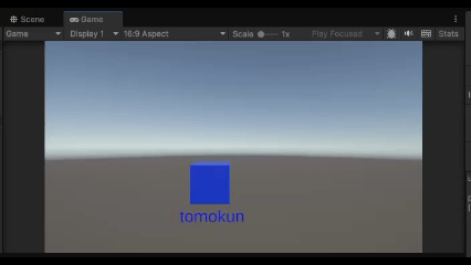ここでは、UIで表示させているテキストの位置を、オブジェクトの移動に合わせて動かすという処理を作ってみます。