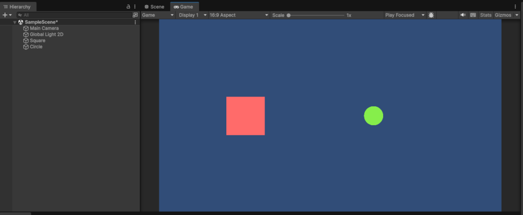 例えば、ゲーム内で以下のようにSquareとCircleのオブジェクトをそれぞれ配置していたとします。