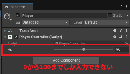 [Range(0, 100)] // 0から100までの値しか選択できなくなる