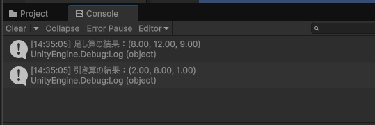 Debug.Log("引き算の結果:" + d);