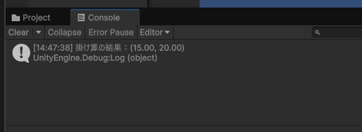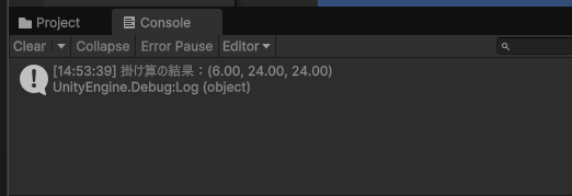 Debug.Log("掛け算の結果:" + c);